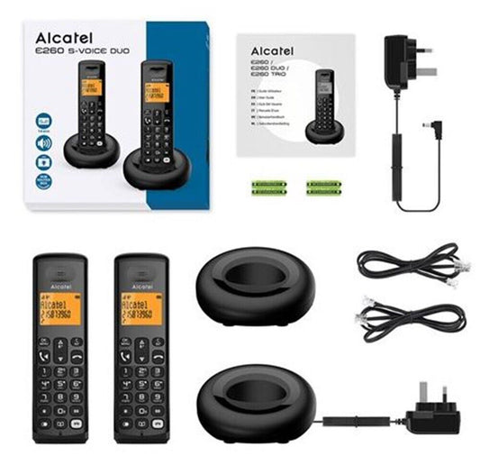 Alcatel E260 DUO S.Voice cordless 2 x Phones Home Telephone Landline ATL1427332