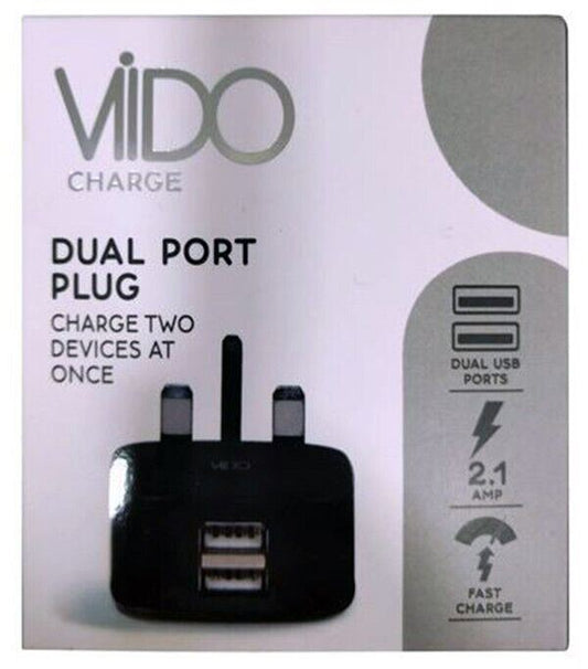 VIDO 2.1 AMP Fast Dual Twin 2 Port USB Charger for UK Mains Wall Plug #05405 UK
