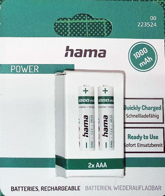 2 x HAMA NiMH Rechargeable Batteries, AAA 1000 mAh Mignon Quick Charge (UK) BNIP