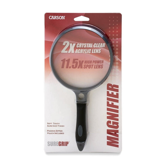 Carson SureGrip Rubberised Grip Large Hand-Held Magnifier with 2x + 11.5x Spot