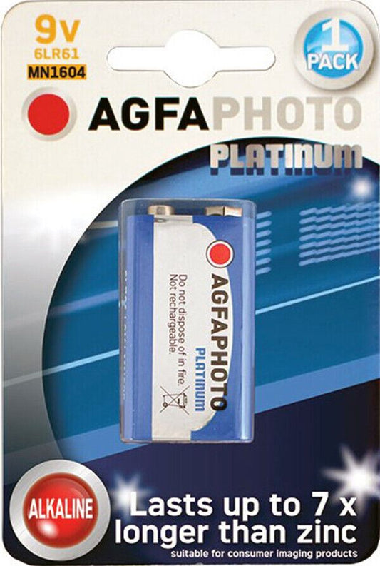 Agfa Photo 9V Platinum Power Alkaline Batteries Smoke Alarm LR22 MN1604 6LR61 UK