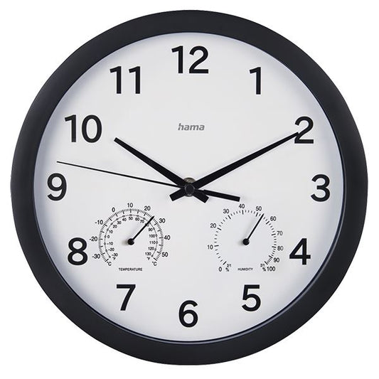 Hama Pure Plus Wall Clock 25cm with Thermometer Hygrometer Quiet #186342 (UK)NEW