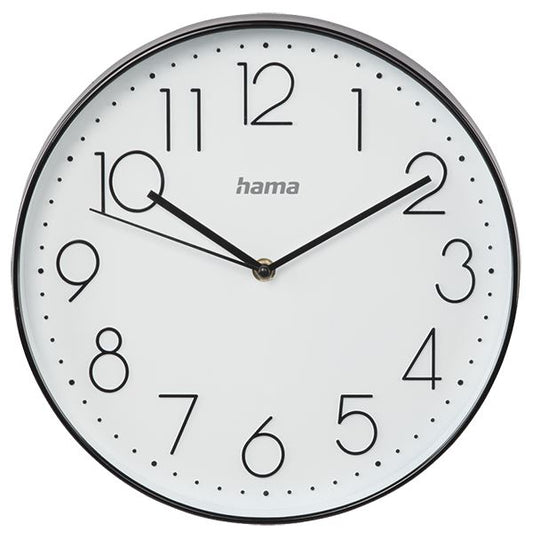 Hama Elegance Wall Clock 30cm Silent Quiet in Black & White #186389 (UK) BNIB