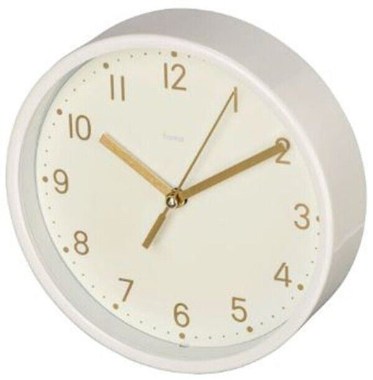 Hama Golden Desk Clock 16cm Silent Quiet in White Sweeping hands #186302 (UK)NEW