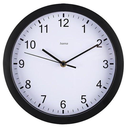 Hama Pure Wall Clock 25cm Silent Quiet in Black Sweeping hands #186338 (UK) BNIB