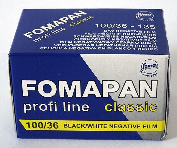 Fomapan 100 Classic is a panchromatically sensitised black and white negative film. Fomapan 100 produces extremely fine grain and a very high resolution. The nominal sensitivity of Fomapan 100 Classic is ISO 100/21. Its exposure latitude gives good results within an exposure range of EI 50/18 to EI 400/27. Fomapan 100 Classic resolving power: 110 lines/mm. Fomapan 100 comes as a 35 mm film.