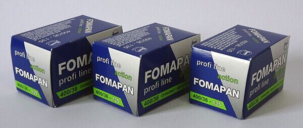 This listing for THREE rolls of Fomapan 36/400 Action Film