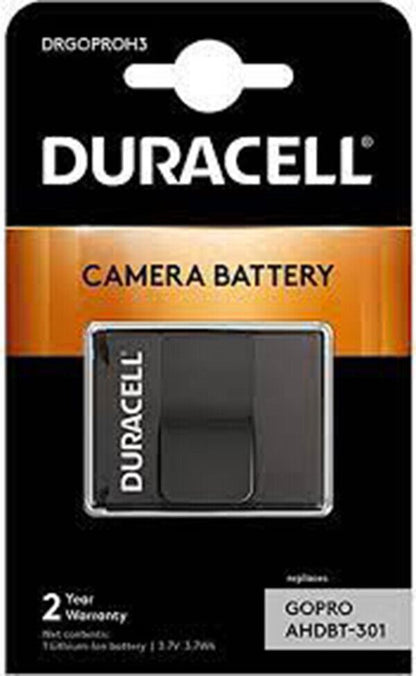 Duracell GOPRO HERO 3 Replacement Battery DRGOPROH3 AHDBT-301 This high-quality Duracell original camera battery will see you snapping again in no time at all. The Duracell Hero 3 camera battery provides long-lasting lithium-ion power for GoPro Hero 3 camera, allowing hundreds of photos / video to be taken on a single charge. Duracell digital camera and camcorder batteries are built to the highest possible standards - something you would expect from such a respected brand. Each battery has a 2-year limited warranty, protecting you whatever happens. Duracell camera and camcorder batteries deliver equivalent performance to the manufacturers original and are supplied with a 3 year limited warranty.