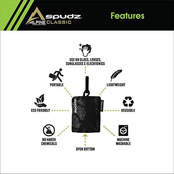 Made in the USA: Our quality speaks for itself. The product is made with top quality components that are durable and built to last. Spudz Classic Premium Microfiber Lens Cloth is machine washable and reusable. Spudz Classic can properly clean optics anytime, anywhere.