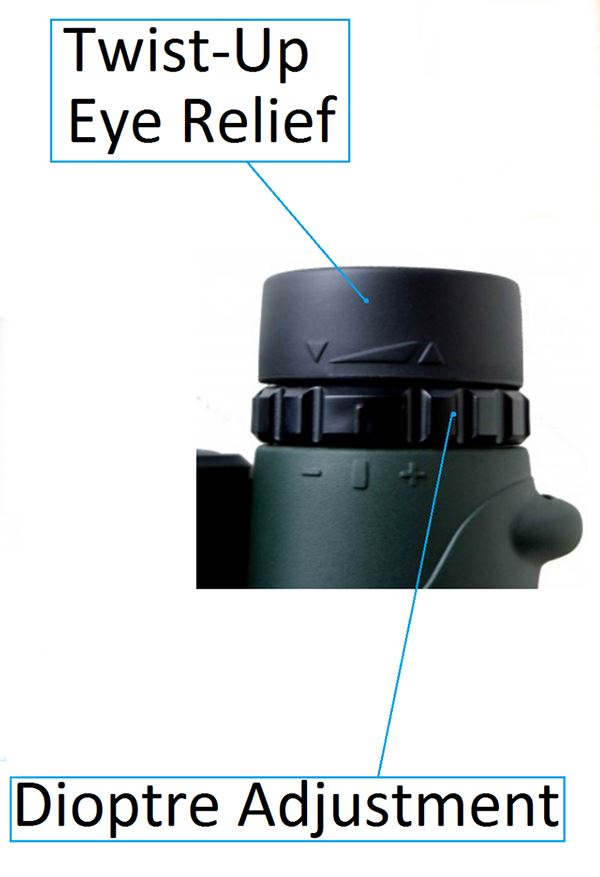 For the comfort of the user the binoculars are supplied with twist up rubber eyecups which make them equally practical for people to use with or without spectacles.