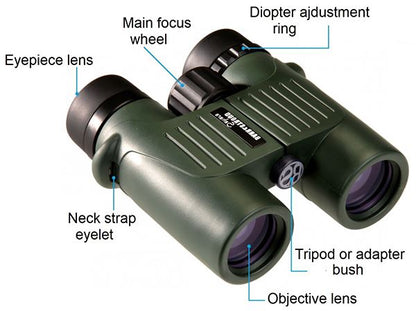 This is a full size roof prism design that makes an ideal all round performer with good light gathering ability. The binocular focuses down to just 3m making it ideal for naturalists and birdwatchers alike. The binocular delivers a powerful 8x magnification.