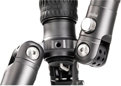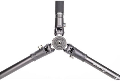 Benro Bat 05A Aluminium Tripod With VX20 Ball Head Kit #FBAT05AVX20 The Bat Zero Series Aluminum Travel Tripod with VX20 Ball Head from Benro is a compact, lightweight tripod with a high load capacity and remarkable stability. The legs offer independent positioning with 5 available preset leg angles, allowing the legs to be placed in more positions that traditional tripods are capable of. The legs are also reversible for inverted shooting and compact storage and travel. The auto-hold leg position trigger makes adjusting the tripod leg angles quick and easy. The aluminum leg spider features three 1/4"-20 accessory mounts for attaching accessory extension arms, monitors, lights, and more. The rubber feet feature three distinct contact surface providing a grip whether the legs are vertical, on an angle, or nearly horizontal when positioned. The VX20 ball head features dual panoramic mode, which allows panning head from its base and also from the quick release platform. The controls are simple with ball friction adjustment built into the main lock knob, plus an independent pan lock. It includes a PU50X quick release plate and features a quick release plate safety lock. Change leg angles effortlessly with the push of a button, then press the pre-locking button when the desired angle is reached. The streamlined milled-aluminum leg spider allows the legs to be reversed for folding or inverted shooting. It includes three 1/4"-20 threaded accessory sockets, allowing lights, microphones, monitors, accessory arms, and more to be attached. The center column and one removable leg combine to form a full-featured monopod. The two section center column locks in place with an ergonomically enhanced twist lock collar and features a ballast hook. Highly grippable twist lock collars make opening and closing legs fast and sure. What’s Included? Specification Head Type Ball Head Base Mount 3/8"-16 Female Camera Mounting Screw 1/4"-20 Male Quick Release Plate Type Arca-Type Number of Bubble Levels 1 Friction Control Yes Independent Pan Lock Yes Ball Sphere Diameter 1.2" / 30 mm Vertical Tilt 90° Panning Range 360° Load Capacity 22.05 lb / 10 kg Maximum Working Height 55.6" / 141.3 cm Max Height without Center Column 43.70" / 111 cm Minimum Working Height 13.2" / 33.5 cm Closed Length 13.6" / 34.5 cm Materials Aluminum Alloy Weight 2.8 lb / 1.27 kg Leg Lock Type Twist Lock Leg Positions 5 Positions Independent Leg Spread Yes Leg Sections 5 Leg Diameter 0.86" / 21.8 mm (Maximum) Bubble Level No Feet Features Rubber Detachable Monopod Maximum Working Height 55.51" / 141 cm Leg Sections 5 Monopod Foot Features Rubber Center Column Features Ballast Hook, Removable Center Column Shape Round Center Column Sections 2 Center Column Extension Type Rapid Lateral / 90-Degree Center Column No Package Weight 4.02 lb Box Dimensions (LxWxH) 17.5 x 4.9 x 4.8"