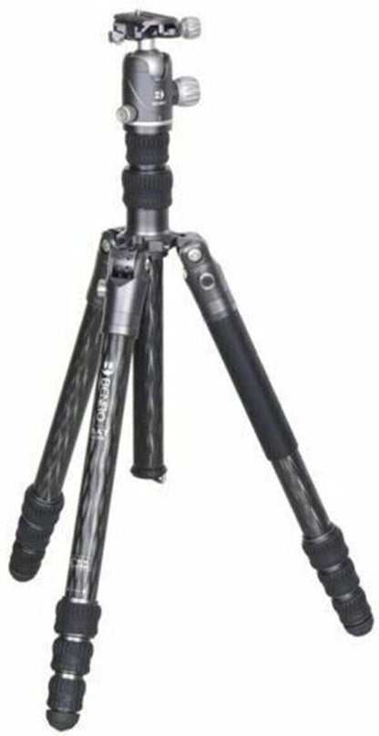 Support up to 35 lb with the FBAT24CVX25 Bat Carbon Fiber Tripod Kit with VX25 Ball Head from Benro. Employing twist locks, the four-section tripod rises to a height of 70" (5.8'), has a reversible column that lets you literally shoot at ground level, and uses a reverse-folding leg design that allows it to fold down to just 17.3". Its light weight of just of just 3.9 lb makes it the ideal travel tripod, and the included VX25 ball head has separate pan and ball locks and an Arca-type clamp with a quick release plate.