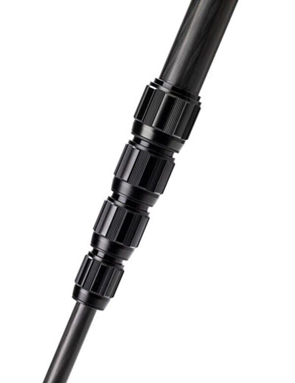 Engineered for stability at any angle with three-stop adjustable leg locks, and independent leg spread, provides lower angles and maximum stability. The built-in bubble level helps maintain a level shot, while the attached ballast hook helps maximize your tripod's stability. The CNC-machined oversized center column locking collar makes it easy to secure the center column in any vertical position.