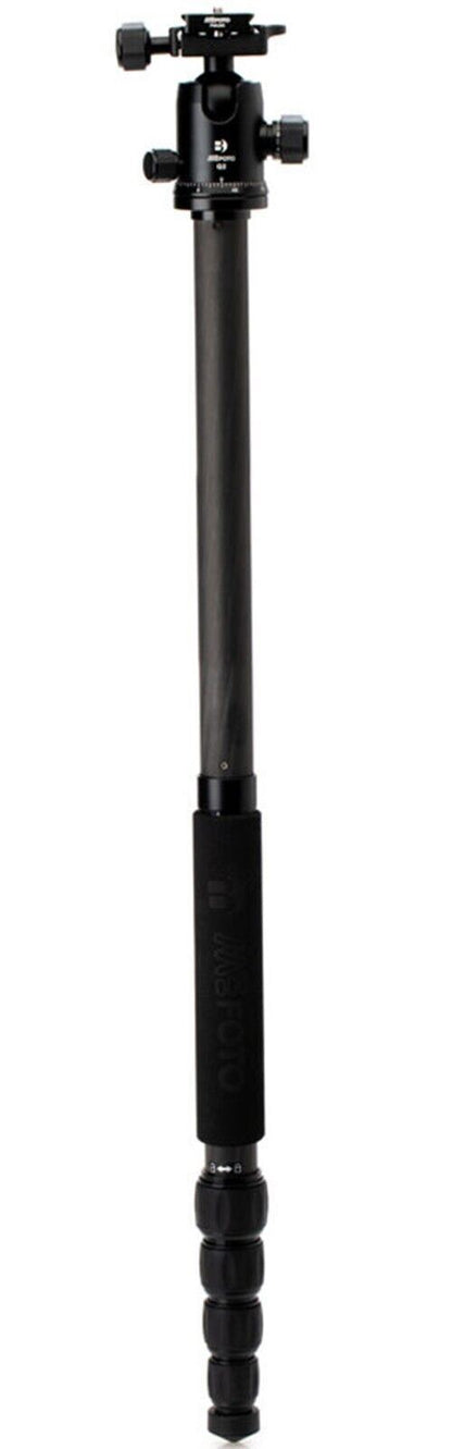 The MeFoto Globetrotter Carbon Fiber Travel Tripod Kit from Benro is a sturdy, compact tripod that extends to 64.2", supports up to 26.4 lb, and folds down to just over 16". The GlobeTrotter is actually two camera supports in one: a foam-cushioned, removable leg attaches to the center column to convert to full size monopod.