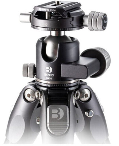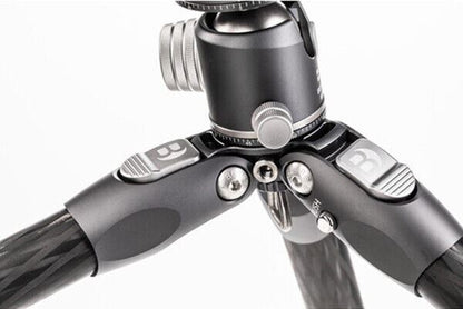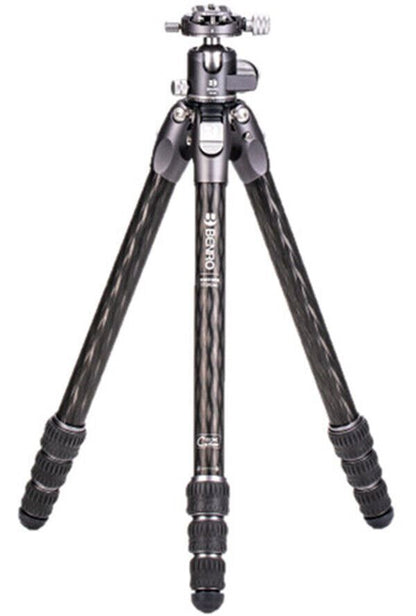 Benro Tortoise 24C Carbon Fibre Two Series Tripod + GX30 Ball Head The small yet mighty Tortoise Columnless Carbon Fiber Two Series Tripod with GX30 Ball Head from Benro is a compact, lightweight travel tripod with a high load capacity and remarkable stability. The center column-free design makes it nimble and lightweight for travel and reduces the potential for shake common to high center column positioning. This is especially significant when shooting video content. The legs offer independent spread and three locking positions and incorporate automatic leg angle adjustment for fast and sure setup. The aluminum leg spider features a 1/4"-20 accessory mounts for extension arms, monitors, lights, and more. The rubber feet feature three distinct contact surface providing a grip whether the legs are vertical, on an angle, or nearly horizontal when positioned. GX30 Dual Panoramic Ball Head The GX30 ball head is a low-profile head featuring dual panoramic mode, which allows panning head from its base and also from the quick release platform. The controls are simple, with ball friction adjustment built into the main lock knob, plus an independent pan lock. It includes a PU56 quick release plate and features a quick release plate safety lock. Auto-Hold Leg Trigger Change leg angles effortlessly with the push of a button, then press the pre-locking button when the desired angle is reached. Lightweight Aluminum Leg Spider Design The streamlined milled-aluminum leg spider allows the legs to be reversed for folding or inverted shooting. It includes three 1/4"-20 threaded accessory sockets, allowing lights, microphones, monitors, accessory arms, and more to be attached. 1/4" and 3/8" self-adaptive tripod head installation screw thread, compatible with most tripod heads, ball heads, fluid heads, and gimbals. Ergonomic Twist-Locks Highly grippable twist lock collars make opening and closing legs fast and sure. What’s Included? Specification Head Type Ball Head Base Mount 3/8"-16 Female Quick Release Plate Type Arca-Type Number of Bubble Levels 1 Friction Control Yes Independent Pan Lock Yes Ball Sphere Diameter 1.42" / 36 mm Vertical Tilt 90° Panning Range 360° Load Capacity 30.86 lb / 14 kg Max Height without Center Column 51.18" / 130 cm Minimum Working Height 7.5" / 19 cm Folded Length 21.26" / 54 cm Diameter 3.15" / 8.0 cm Materials Carbon Fiber Weight 3.33 lb / 1.51 kg Leg Lock Type Twist Lock Leg Positions 3 Positions Independent Leg Spread Yes Leg Sections 4 Leg Diameter 1.13" / 28.6 mm (Maximum) Bubble Level No Feet Features Rubber Package Weight 5.35 lb Box Dimensions (LxWxH) 23.7 x 4.9 x 4.8"
