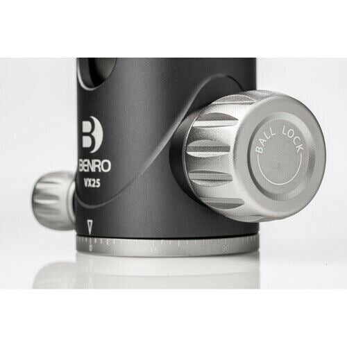 Benro VX25 2 Series Dual Panoramic Arca Type Aluminium Ball Head Featuring an elegant and minimalistic design with an excellent strength to weight ratio, the VX25 Two Series Arca-Type Aluminum Ball Head from Benro offers dual panoramic mode, which allows you to pan the head from its base in addition to the quick release platform. The controls are simple, with ball friction adjustments built into the main locking knob and an independent pan lock. This newly designed ball head features a safety lock for the quick release plate, and the included bubble level enables you to accurately level out your shot. Aluminum ball head with 55 lb load capacity for outstanding strength to weight ratio Dual panoramic mode allows you to pan the head from its base in addition to the quick release platform Ball friction adjustment built into the main locking knob and an independent pan lock 360° pan movement lets you capture panoramic shots with ease Bubble level for accurately leveling photographs Safety lock for quick release plate What’s Included? Specification Head Type Ball Head Base Mount 3/8"-16 Female Camera Mounting Screw 1/4"-20 Male Quick Release Plate Type Arca-Type Load Capacity 55.12 lb / 25 kg Number of Bubble Levels 1 Friction Control Yes Independent Pan Lock Yes Material Aluminum Panning Range 360° Ball Sphere Diameter 1.42" / 36 mm Base Diameter 1.81" / 46 mm Dimensions H: 3.7" / H: 95.0 mm Weight 11.99 oz / 340 g Package Weight 1.105 lb Box Dimensions (LxWxH) 6.1 x 4.6 x 4.5"