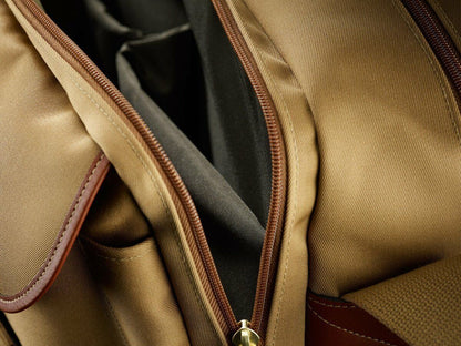 The 335 MKII is made from a choice of Canvas or FibreNyte materials that are bonded to a polyester lining with a layer of butyl rubber, known as the 'StormBlock'. This butyl layer is the reason why you will never need to re-proof your Billingham bag, the 'Stormblock' layer will keep your bag waterproof for its lifetime.
