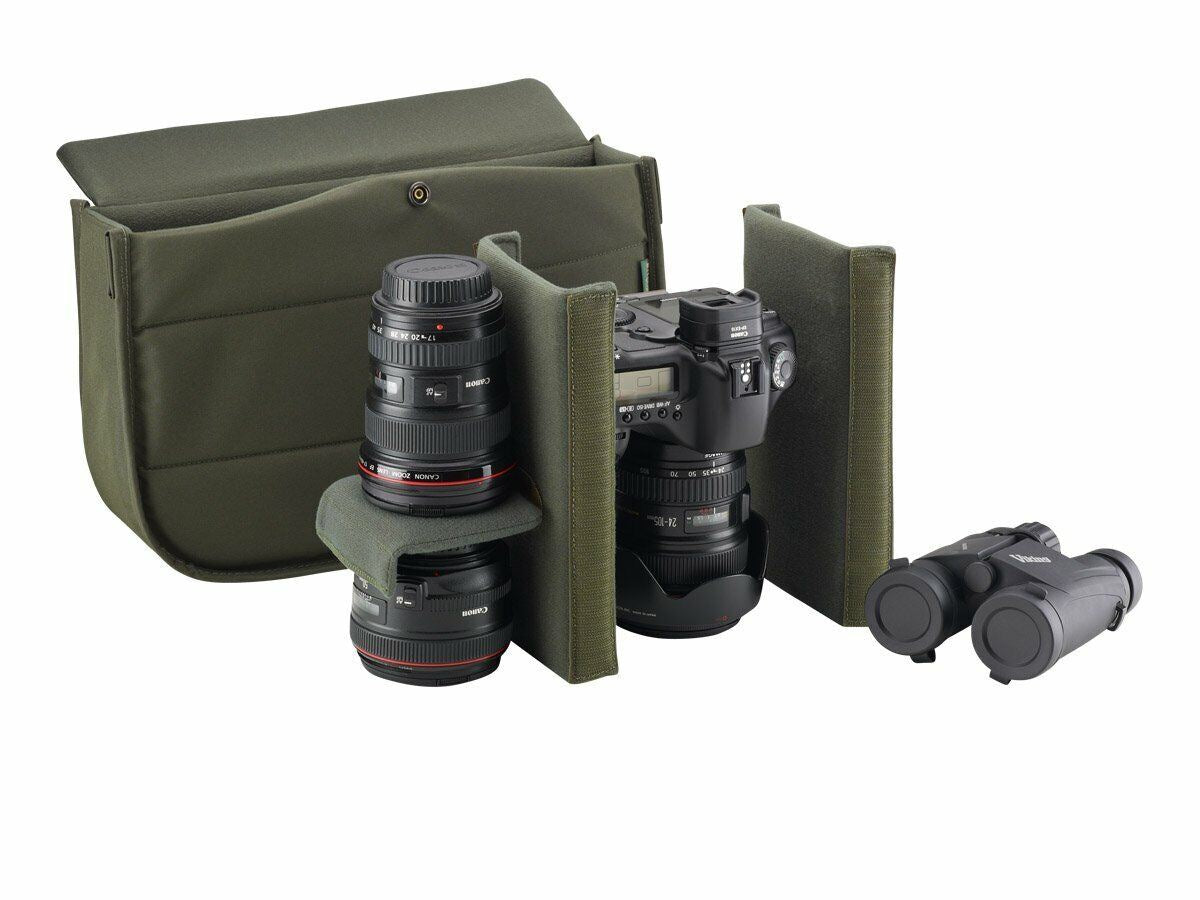 The bag easily fits most DSLRs (without a battery grip) or almost any mirrorless camera – and a couple of small to medium sized lenses with accessories. The capacity of the bag can be increased with our optional Avea pockets that attach to the leather side panels.