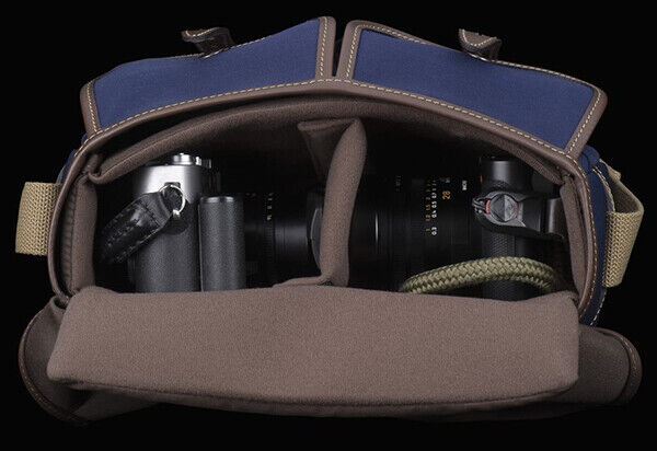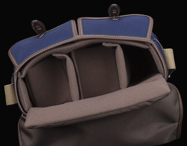 Billingham Hadley Small Camera / DSLR Bag in Navy / Chocolate REMOVABLE PADDED INSERT The flexible, padded insert is made of dense, fabric covered, 'closed-cell' foam. Protection is provided on all six sides - including the lid. Like the bag itself, the insert is flexible front-to-back and can therefore fit slightly bigger gear than its dimensions suggest. 2x vertical dividers and 2x horizontal flap dividers are included and can be attached anywhere inside with Velcro®. The Padded Insert is also removable, giving you the ability to turn the Hadley Small from a camera bag to a casual, messenger bag in seconds. THIS IS WHAT'S INCLUDED A SELECTION OF REPLACEMENT PADDED INSERTS FOR COMPATIBLE BILLINGHAM CAMERA BAGS. THESE ARE SUPPLIED WITH THE BAGS CONCERNED BUT YOU CAN PURCHASE THESE IF YOU NEED A REPLACEMENT OR YOU WANT MULTIPLE INSERTS TO SWAP OUT SETS OF CAMERA GEAR MORE QUICKLY. SOME PEOPLE ALSO PUT THEM IN NON-CAMERA BAGS TO ADD PROTECTION INSIDE THOSE. Front Straps - Real, full-grain, vegetable tanned leather front straps. Already supplied with bags that have removable ‘Quick Release Straps’. Check the table below to find compatible straps for your Billingham bag. WHAT IS THE SIZING? THE BAG External dimensions W300mm (11¾”) x D140mm (5½”) x H220mm (8⅝”) Internal dimensions (Main Compartment) W260mm (10¼”) x D80mm (3⅛”) x H190mm (7½”) Please note this bag and its padded insert are flexible - especially front to back. It can fit items slightly larger than the dimensions suggest - it can comfortably bow out to a 'D' measurement of 100mm at the bottom and 120mm at the top (centre). Capacity (Main Compartment) 3.50 litres (0.12 feet³) Capacity (Total) 5 litres (0.18 feet³) POCKETS 2 in total (excluding main compartment) FRONT DUMP POCKETS (2) Internal dimensions W100 to 140mm (4” to 5½”) x D40 to 50mm (1½” to 2”) x H170mm (6¾”) Capacity 0.5 to 0.75 litres (0.02 feet³ to 0.03 feet³) SHOULDER SLING Length Can be adjusted between 850mm (33½") to 1480mm (58¼") approx. Width 38mm (1½") Compatible with SP40 (recommended) Shoulder Pads (not included). WHAT DOES IT FIT? Most small-to-medium DSLRs (e.g. Canon 6D MkII, Nikon D750 without a battery grip etc) with a small-to-medium lens attached. Plus 1 or 2 lenses spare or a speedlight. Almost any mirrorless/CSC camera (e.g. Fujifilm X-Pro3, Sony A7IV, Canon EOS R, Nikon Z6) with small to medium lens attached. Plus 1-2 lenses spare or a flash. Two rangefinder cameras (e.g. Leica M10 & Leica M6) with almost any lens attached. Almost any bridge camera (e.g. Leica V-Lux 5, Sony RX10 IV, Lumix FZ2000 etc) plus space to spare. Medium-Large binoculars (e.g. Canon 10X42L IS WP or Nikon EDG 10x42) with space to spare. Small foldable drones such as Mavic Air 2 or Mavic Mini 6.