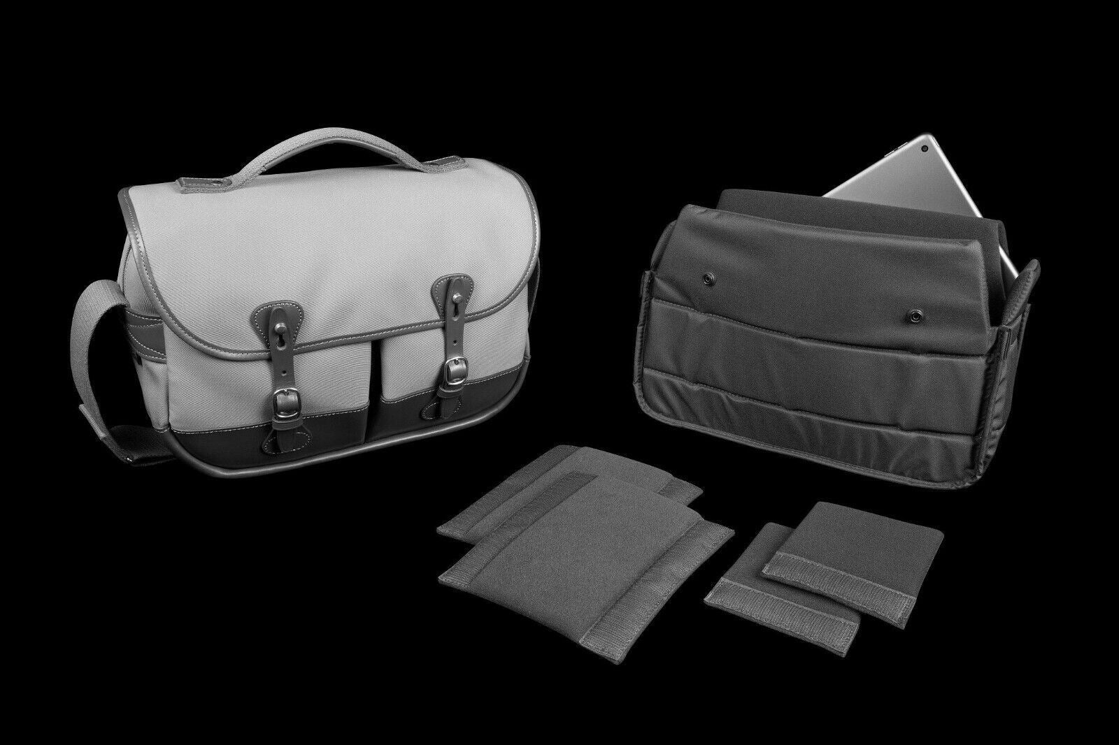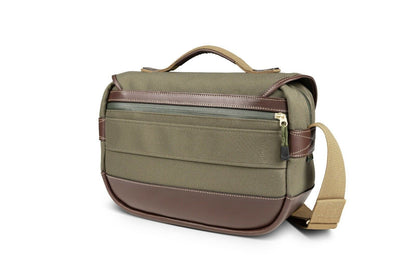 Billingham NEW Mini Eventer Camera / Tablet Bag in Sage Green with Chocolate Leather Trim with Olive Green Lining The ‘Mini Eventer’ was created following feedback from customers that whilst many loved the look and functionality of the existing ‘Eventer’, they found it was simply too big for their needs. Sized between two of our best-selling bags, the ‘Hadley Small Pro’ and ‘Hadley Pro 2020’, the Mini Eventer is designed to meet the needs of those who want the ultimate style and protection for their gear in a more portable size. Like the existing Eventer, its styling is dominated by its base that covers the lower third of the bag in the same top-grain leather that we use to make all of our bags. Carefully selected and worked to the desired shape, these large pieces of leather give the bag structure and also help to form the two deep front dump pockets. The bag also features a 2” wide shoulder sling, to match its older sibling, made from shuttle woven polyester. This sling is adjustable in length and includes a padded leather SP50 Shoulder Pad for added comfort when carrying on your shoulder. When designing the ‘Mini Eventer’ we took the opportunity to add some popular features. These features include a luggage trolley retainer strap - useful when travelling through airports etc., an improved top handle with leather underneath and weatherproof zips on the rear pocket and dual-zipped main compartment. The main compartment is also protected by the main flap, made of our 3-layer waterproof materials. Both our 3-layer Canvas and 3-layer FibreNyte materials have a layer of butyl rubber in the middle that prevents the fabric from ever needing to be reproofed. Together, the fabric and zips make this bag exceptionally weatherproof. This aforementioned main flap is opened with our ‘Quick Release System’, simply slide the top of the leather straps off the brass ‘Clogballs’ to gain access. As the leather softens and with practice, you should soon be able to open the bag one-handed. The buckles aren’t needed to gain access to the bag, they need be used only to occasionally fine-tune the tension between the main flap and front pockets (depending on what you are carrying in those pockets). The ‘Mini Eventer’ has a specially designed padded insert. Inside you can safely store and protect a small-to-medium sized DSLR such as the Canon 5D MkIV (without a battery grip), a mirrorless camera such as Fujifilm X-T4, Sony a9ii, Canon R5, Nikon Z-7ii or rangefinder camera such as the Leica M10 - each with 2-3 small-to-medium sized lenses. In the back of the removable insert is a padded area for an 11inch iPad (or similar smaller device). Alternatively, remove the insert to turn the bag into a casual bag within seconds. All Billingham bags are made at our factory in England and are covered by our 5 year manufacturers guarantee. Specifications External Dimensions W360mm (14¼") x D160mm (6¼") x H300mm (11¾") (including top handle) Internal Dimensions (Main compartment) *Please note that the bag is narrower at the top and bottom. The 'W' value is approximately 270mm (10⅝") at the narrowest point. This will reduce what camera gear can be packed inside if you use the full height of the bag. W350mm (13¾")* x D120mm (4¾") x H230mm (9⅛") (with the insert removed) 5 litres (0.18 feet³) (inside padded insert) 9 litres (0.32 feet³) (insert removed) Internal Tablet Area (sewn in into the back of the removable padded insert) Weight Pockets (x3) Front Dump Pockets (x2) Rear Zipped Pocket Shoulder Sling Measurements Luggage Trolley Strap Retainer Colour of Internal Lining Colour of Outside of Bag Colour of Inside Lining Khaki Canvas / Tan Leather Olive Khaki FibreNyte / Chocolate Leather Olive Sage FibreNyte / Chocolate Leather Olive Black FibreNyte / Black Leather Olive Navy Canvas / Chocolate Leather Chocolate