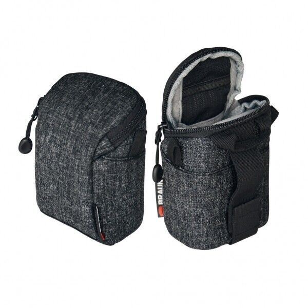 Practical bag for compact cameras. With belt loop and removable carrying strap. Elegant material in a linen structure, with a protective layer of synthetic material on the bottom, to keep dirt and scratches away.Braun Alpe 2 Compact Camera Case in Denim #172950