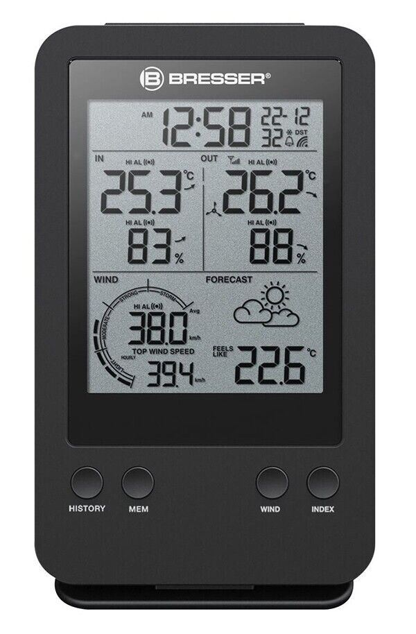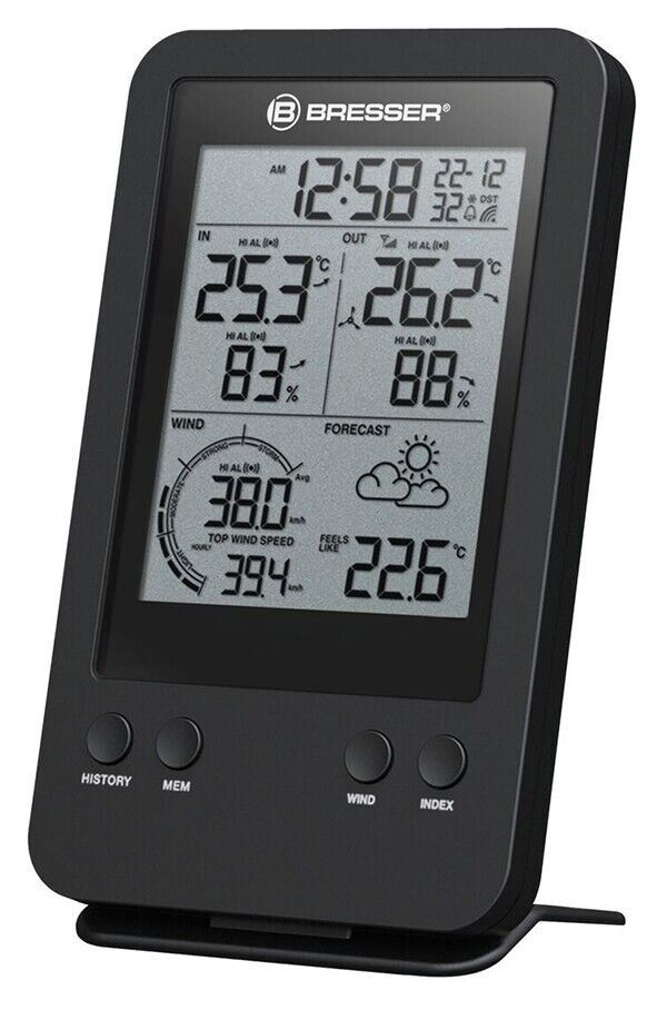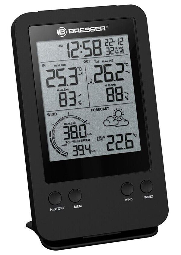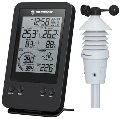The wind gauge Weather Station from BRESSER is a professional anemometer for your home garden. You can read the current wind speed from the base station as well as average and maximum values per hour, day, month or year can also be displayed. A wind speed alarm can also be set.
