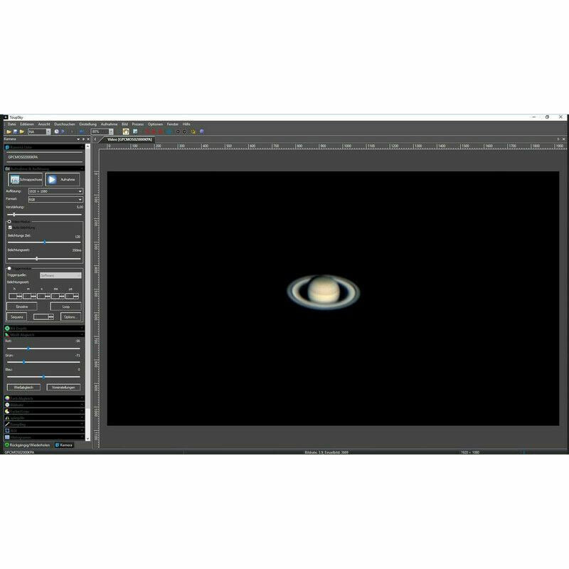 The camera's forte is both Planetary, Lunar and Solar high speed imaging - and long duration deep sky astrophotography as well. At full 1936 x 1096 resolution, the Bresser Full HD Deep-Sky Camera & Guider can film at 15fps and can go significantly higher than this when the camera's resolution is reduced to the central area of the chip. For longer duration imaging, the maximum exposure time can be set to a generous 16 minutes. There is no IR cutoff filter in front of the sensor to ensure that the maximum amount of IR/Near IR wavelengths get to the chip, increasing sensitivity, particularly on hydrogen rich objects. However, when imaging the Moon and the brighter planets, the use of an IR cut filter would be recommended.