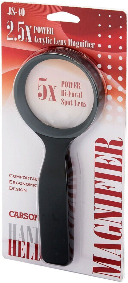 Carson 3" Hand Held Compact 2.5x Magnifier with 5x Spot Lens (UK Stock) BNIP new