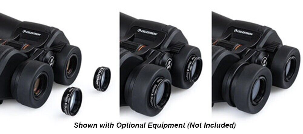 Far simpler to use than a telescope, the Celestron 15x70 SkyMaster Pro ED Binoculars are made for astronomy and offer an easy way to explore the night sky. They excel at long-range terrestrial glassing as well. Extra-low dispersion lenses, multiple coats of antireflective XLT coating, and wide objective lenses combine to produce bright, high-contrast views with accurate color fidelity. Binoculars this powerful require a stable support, so the SkyMaster Pro ED can be mounted on a tripod with an optional adapter. Special eyepiece threads allow the use of 1.25" astronomical filters to improve your viewing experience.