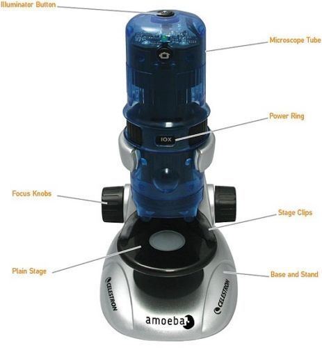 Celestron Amoeba Dual Purpose Digital Microscope Blue is offering some quality features, this particular dual purpose microscope is best choice if you are interested in high powered specimen slide viewing or let’s says you can even quickly set Amoeba to a lower power to thoroughly enjoy viewing of stamps, currency and a lot of other objects whenever you desires to. You are also provided the comfort of detaching Amoeba’s tube for purpose of convenient handheld digital viewing of large objects. With Celestron Amoeba Dual Purpose Digital Microscope Blue built in 1.3 MP digital camera, Amoeba provides you the ease and comfort of to have snap shots or even video and upload them if you wants to your computer to save, or even send and share with anyone with whom you desires to, Celestron Amoeba Dual Purpose Digital Microscope Blue is offering you quality results along with a price which is not much while taking in account the kind of performance which this Celestron Amoeba Dual Purpose Digital Microscope has the capability to deliver.