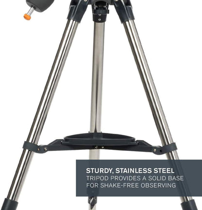 Discover our Solar System with the Celestron AstroMaster 114EQ! You’ll be ready to observe in minutes thanks to the quick and easy no-tool setup. The 114EQ provides bright, clear images of the Moon, planets, star clusters, and more for great nighttime viewing.