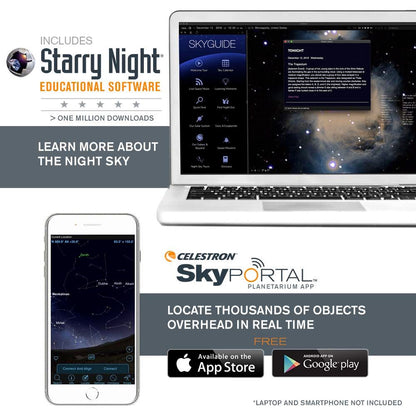 Included Accessories10 & 20 mm eyepieces, Star-Pointer Finderscope, GC-2 Mount, Stainless Steel Tripod with Accessory Tray, The Sky X Astronomy Software