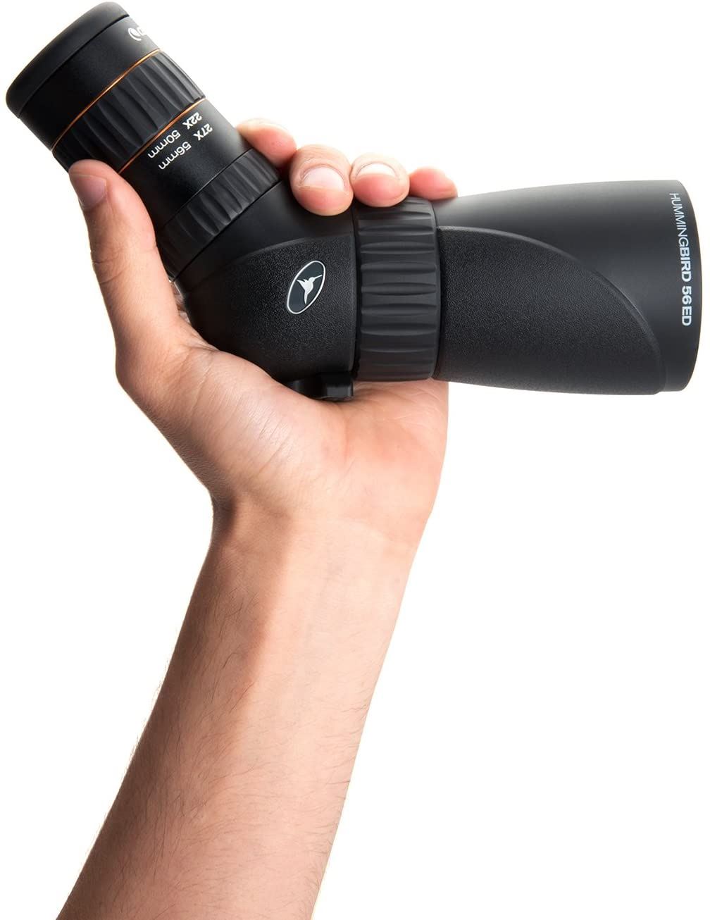 With its ultra-lightweight and durable housing, you do not have to worry about accidentally exposing it to moisture or even dropping it into a water reservoir because it is waterproof and nitrogen-purged fogproof. The body features an ergonomic design and rubber armoring for a secure hold and a pleasant handling experience. If you set out for long-duration and long-distance observations, mount it on a tripod, monopod, or bipod using its built-in tripod adapter. Also included with the Hummingbird spotter are an eyepiece cover, objective lens cover, and carry case.