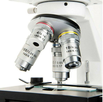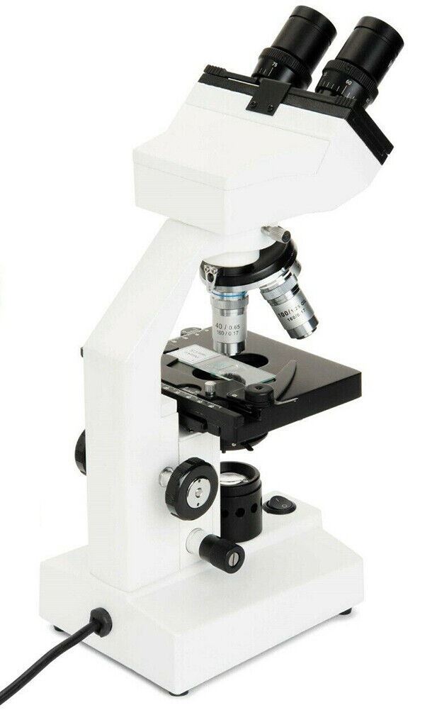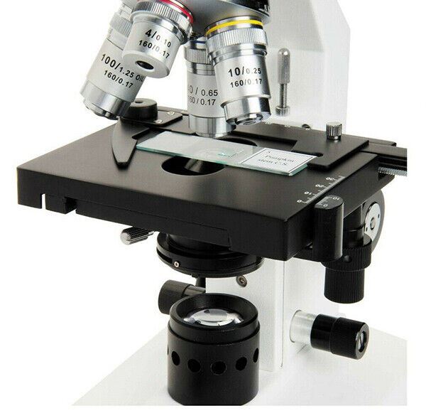 Features four-objective click-stop turret holds the 4x, 10x, 40x, 100x achromatic objectives and the instrument comes with two sets of eyepieces that produce magnifications from a practical 40x to a powerful 2000x