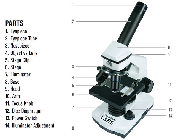 - 10x eyepiece allows you to view specimens at 40x, 100x, 400x magnification
