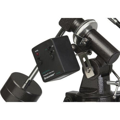 Celestron Motor Drive for EQ AstroMaster PowerSeeker Telescopes #93514 The Celestron Motor Drive for AstroMaster Telescopes has a variable speed motor, which can accurately track celestial objects. This single axis drive works on equatorial mounts and allows you to maintain total control over your scope whether automatically or manually. Hemisphere control (north/south) is controlled by a switch. Depending on weather conditions, the 9V battery will last up to 40 hours. Compatible with CG2 Powerseeker and CG3 AstroMaster EQ mounts Operates on single axis The 9V batteries (included) can operate the motor for up to 40 hours What’s Included?