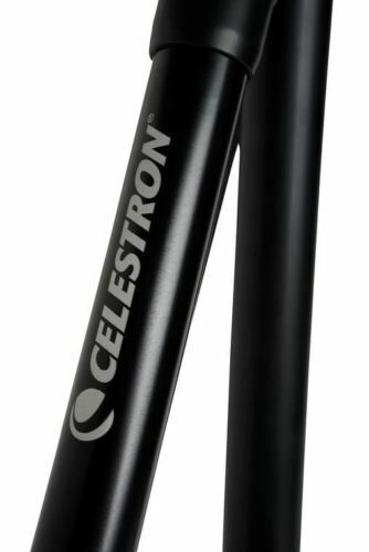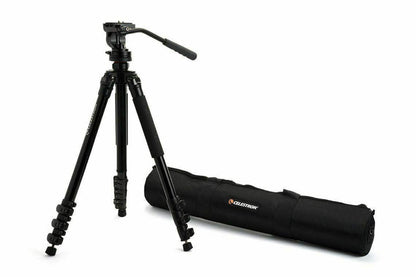 The Celestron Regal Tripod was designed to be your perfect tripod is lightweight (6.04 lb) and compact, yet it can hold up to almost 9 lb of equipment. It is topped with a two-way fluid pan head. The single handle makes it easy to move the head around, while two knobs, located on the same side of the head make it easy to adjust the tension of the pan and tilt. A quick release plate with standard 1/4-20 thread mount makes it easy to attach a spotting scope, binocular, camera, or small telescope to the tripod. The quick release plate also doubles as a balance rail allowing the optic to be balanced when attached to the tripod. The quick release plate has a safety mechanism which prevents it from sliding completely out of the pan head without pushing the release button.