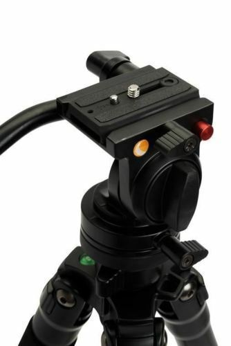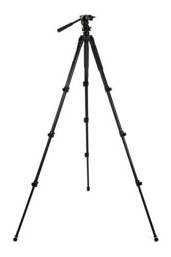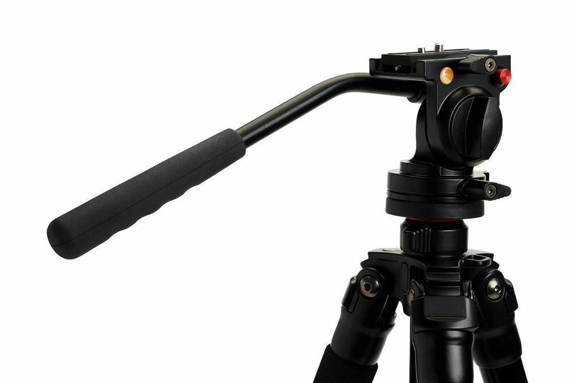 - Sturdy aluminium tripod adjusts in height from just over 18 inches to nearly 69 inches and includes a two-way fluid pan head with quick release plate that doubles as a balance rail