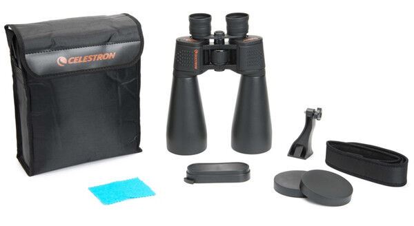 Celestron SkyMaster 15 x 70 Observation Binoculars Celestron's SkyMaster Series of large aperture binoculars are a phenomenal value for high performance binoculars ideal for astronomical viewing or for terrestrial (land) use - especially over long distances. Each SkyMaster model features high quality BAK-4 prisms and multi-coated optics for enhanced contrast. Celestron has designed and engineered the larger SkyMaster models to meet the special demands of extended astronomical or terrestrial viewing sessions. The 15x70 version is one of the most popular models in the series. It offers serious large aperture light gathering in an affordable and reasonably lightweight configuration. The best available binocular for astronomical use that is light enough for hand holding, and still having a larger aperture. Easily tripod mounted for astro or terrestrial use. As a terrestrial binocular, it excels in low light. For birding at dawn or dusk, and for wader or gull roosts, this binocular removes the need for a spotting scope. The magnification is high enough to resolve detail and for species recognition in poor light, whilst retaining a bright image. An exit pupil of 4.67mm is ideal for this purpose. This binocular is lightweight enough to hand hold for this purpose, or can be mounted on any popular birding tripod. General Details: Technical Specifications: OPTICAL DESIGN: Porro DIAMETER: 70 mm (2.76 in)