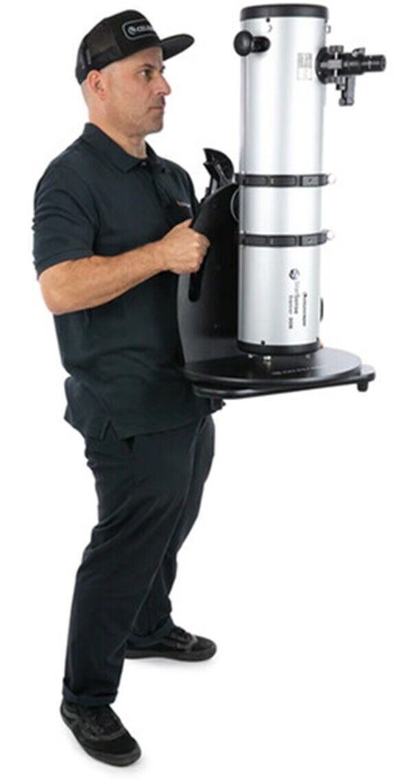 Equipped with a 150mm parabolic primary mirror, the telescope can pick out the brighter objects, even when used in a city. A darker location will provide access to many more. The Tabletop Dobsonian is highly portable and can be used on a table, a car hood, or atop an optional tripod.