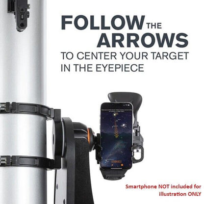 Pairing the simplicity of a Dobsonian with a comprehensive but user-friendly smartphone app, the StarSense Explorer 150mm f/5 Tabletop Dobsonian Telescope from Celestron makes it easy to observe fascinating objects in the cosmos. No computerized mount is needed—simply place your phone in the dock attached to the optical tube, and after a quick alignment, the app will scan the sky and guide you to Jupiter's Great Red Spot, Saturn's rings, the Orion Nebula, and hundreds of other objects. When the bull's-eye on your phone screen turns green, the object is visible in your eyepiece.