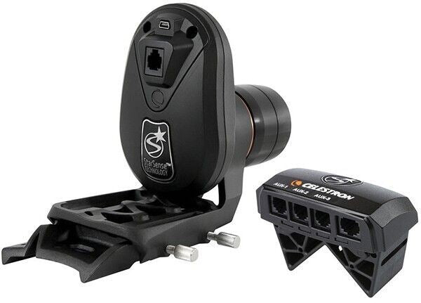 Celestron StarSense AutoAlign Telescope Alignment Accessory for Skywatcher Mounts #94006 Celestron improves your Sky-Watcher mount with their StarSense AutoAlign system by utilizing the StarSense camera to take an image of the star field and comparing it against the 45,000+ object database in the StarSense controller to quickly and accurately align the scope. The StarSense camera and hand control both plug into the included Interface Box, which then plugs into the mount's hand control port. This system is plug-and-play compatible with select Sky-Watcher mounts so you can install it quickly and get observing even faster. Designed with a similar database as Sky-Watcher's SynScan so you won't have to sacrifice database usability, the StarSense hand controller contains more than 45,000 objects, including the complete Messier, Caldwell, NGC, and IC catalogs; plus user-defined objects. You can add additional stars into its pointing model which will improve pointing accuracy, and it also has Solar System align and variable tracking speeds. Three auxiliary ports support optional accessories such as a GPS unit to expand your telescope's capabilities. Sky-Watcher Mount Compatibility · HEQ5 · EQ6 · AZ-EQ5 · AZ-EQ6 · EQ8 · AZ SynScan compatible mounts What’s Included?