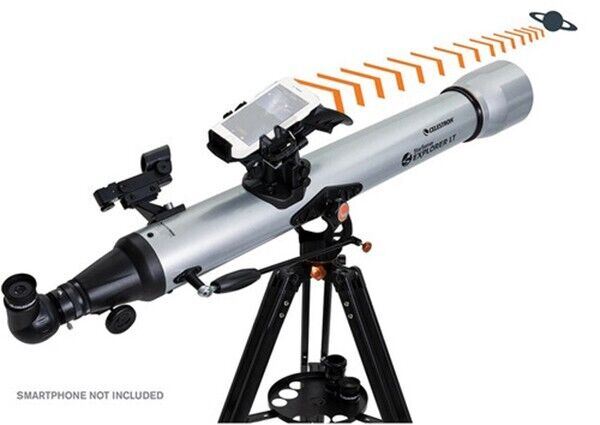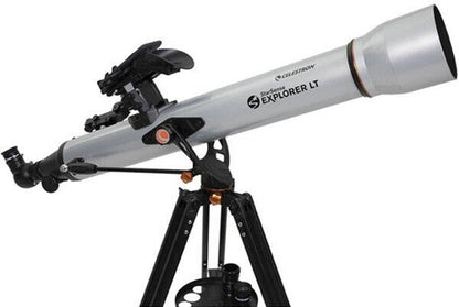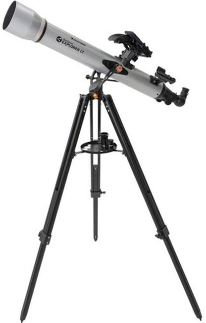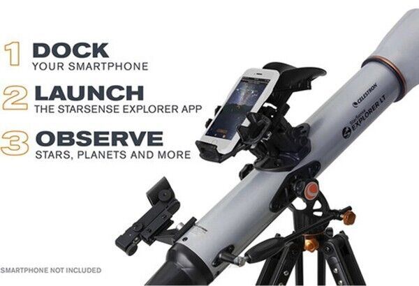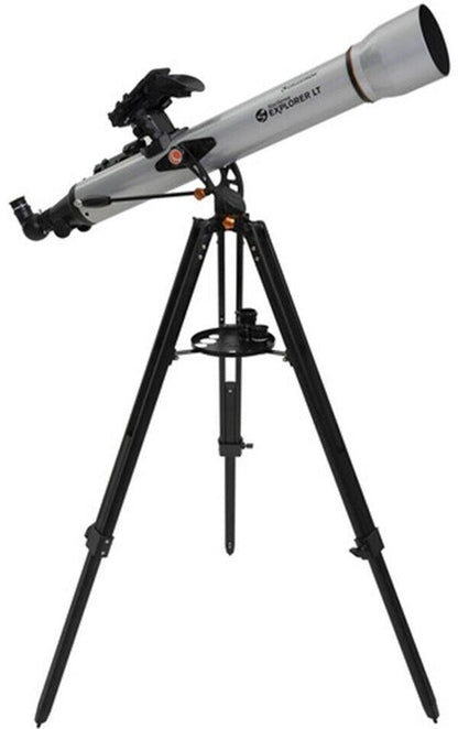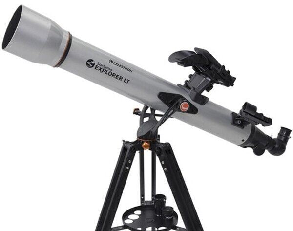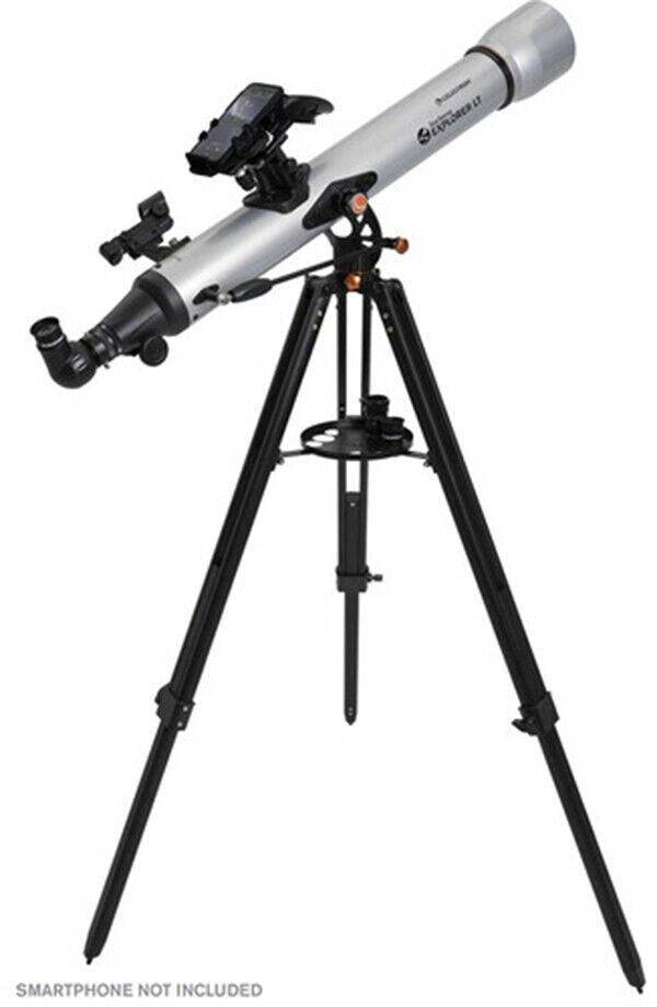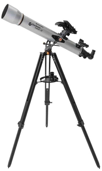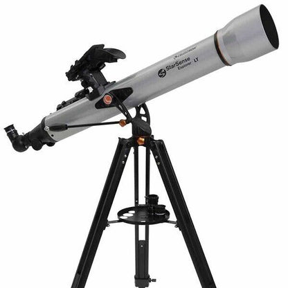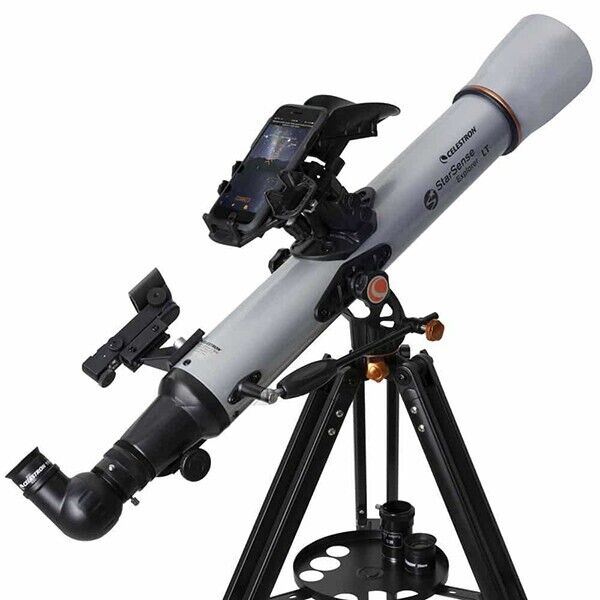 Celestron StarSense Explorer LT 80AZ App enabled Refractor Telescope #22451 With the Celestron StarSense Explorer LT 80AZ 80mm f/11 AZ Refractor Telescope, exploring the wonders of the universe is as simple as 1-2-3: This innovative integration of smartphone and telescope offers beginner astronomers a fast and (more importantly) easy way to discover what's up in the night sky and where to view it. Utilizing similar alignment technology that satellites use when they move out of position, the StarSense Explorer app uses your phone's camera to stream a constant series of images and compare them to an internal database to identify the starfield and determine its location. This "Lost in Space Algorithm" is more precise than typical astronomy apps and does not require a cell signal to work—so you can use it even when you're far off the grid. A holder on the mount, aligned with the telescope, ensures that where the phone is pointed is the same as where the scope is, so that when you follow the onscreen directions to find the object of interest and you look through the eyepiece, it will be there. Optically, the 80mm objective lens offers clear views of the lunar surface and planetary features with accurate color representation and little field curvature at the edges of the view. Supporting the telescope and StarSense holder is a basic manual yoke mount that lets you move the telescope quickly and easily according to the app's direction to find your object of interest. A two-section aluminum tripod provides a wide adjustable height to accommodate a variety of viewing positions and users, while being highly portable for when you have to carry it to remote viewing locations. Designed as a complete observation rig, Celestron includes a variety of accessories to get you viewing right out of the box. In addition to the telescope, mount, and tripod, you also get two eyepieces that provide you with high and low magnifications, a Barlow lens that effectively doubles the power of each eyepiece—essentially giving you four magnification choices—plus a 90° diagonal that not only places your head in a comfortable viewing position when the scope is pointed directly overhead but also corrects the view so you can use the telescope as a conventional spotting scope. StarSense System Compatible Smartphones: Optical Tube Assembly Mount and Tripod Included Accessories What’s Included? Specification Optical Design Refractor Aperture 80 mm / 3.1" Focal Length 900 mm Focal Ratio f/11 Resolution 1.74 Arcsec (Rayleigh) Focuser Dual-Speed Rack-and-Pinion Eyepiece Barrel Diameter 1.25" Diagonal 90° Erecting Finderscope Yes Optical Tube Dimensions 38 x 3.5" / 96.5 x 8.9 cm Type Manual; Alt-Azimuth GoTo Capability No Type Adjustable, 2-Section Material of Tripod Aluminum Batteries None Adapter None GPS No Wi-Fi No Weight 5.4 lb / 2.4 kg (OTA) Package Weight 16 lb Box Dimensions (LxWxH) 38 x 15 x 9.4" FREE Fedex Priority 24 & 48 Delivery to Zone 1 Areas