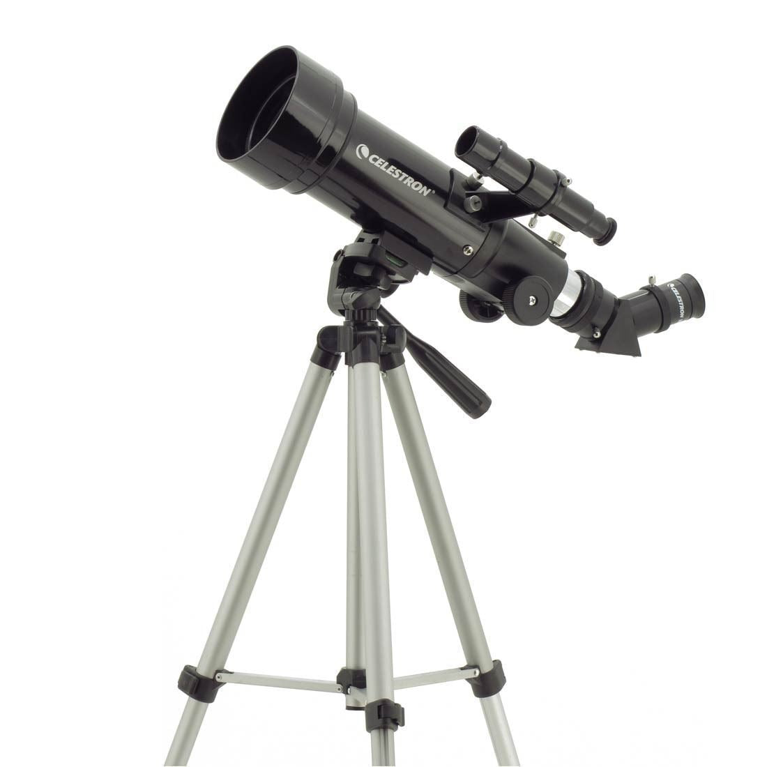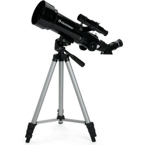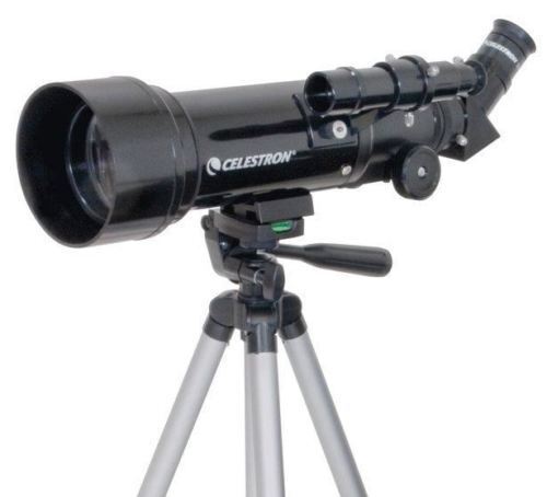 Celestron Travel Scope 70 Refractor Astro Terrestrial Telescope #21035 The Celestron Travel Scope 70 Portable Telescope was designed with travelling in mind while offering exceptional value. The design is compact and and portable whilst maintaining great optical performance. Ideal choice for terrestrial and casual astronomical observation. Spend a night camping under the stars with your Travel Scope. Camping trips, or any trip for that matter, can require a lot of baggage. Food, tents, chairs, bedding, etc. can all take up a lot of space, this doesn't mean that you have to leave your telescope behind because there isn't any room. This Travel Scope Telescope was designed with travelling in mind so that it can come with you no matter where you go. The telescope and tripod fit perfectly inside the included custom backpack for easy storage and transportation. There is no hassle when it comes to setting your telescope up; it’s quick and easy with no need for any tools. The pre assembled aluminium full size photographic tripod ensures a stable platform on a variety of surfaces. Clear, crisp images are a guarantee with the all coated glass optical elements and the smooth functioning altazimuth mount with easy pointing allows you to locate objects quickly and efficiently. The Travel Scope is made of the highest quality materials to ensure stability and durability. All this adds up to a telescope that gives you a lifetime of pleasure with a minimal amount of maintenance. Featuring a compact and portable design with ample optical performance, the Travel Scope is ideal for terrestrial as well as casual astronomical observation. Key Features Specifications FREE Fedex Priority 24 & 48 Delivery to Zone 1 Areas