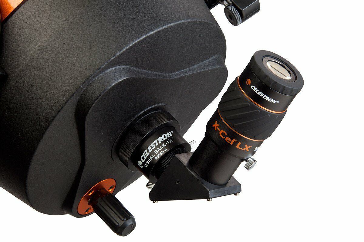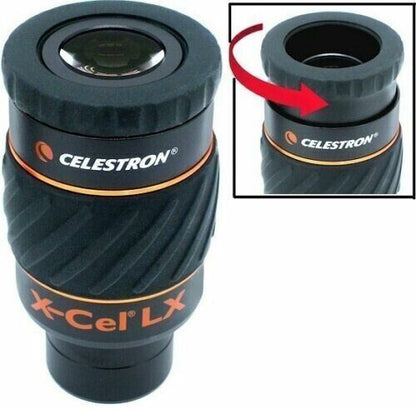 Celestron's X-Cel LX 7mm Eyepiece is designed for comfortable near and deep-space astronomical observation. It is built with a 6-element lens configuration, blackened edges, and anti-reflective fully multi-coated optical surfaces to ensure bright and clear high-contrast images with true color transmission across the entire wide 60° field of view. Celestron engineered the X-Cel LX series of eyepieces with a long 16mm eye relief that brings the user's face back from the scope to minimize vibrations caused by contact with the eyepiece. All eyepieces in the series are completely parfocal, making switching eyepieces convenient by not requiring re-focusing. With a 1.25" diameter barrel, it will fit the most common size drawtubes, visual backs, and accessories; and a rubberized collar provides a non-slip grip especially in cold weather and when wearing gloves. The housing is made of a lightweight and durable aluminum alloy with a reflection-limiting matte anodized finish, and a retractable eyecup that extends with a simple twist for comfortable use with or without eyewear.