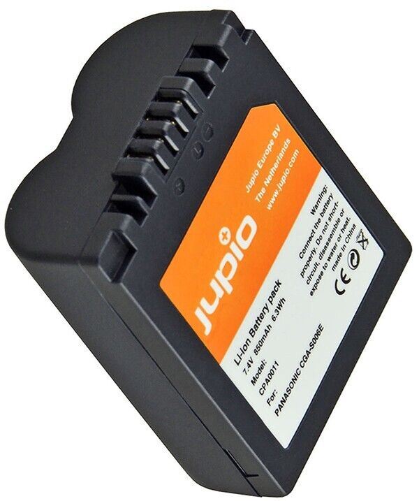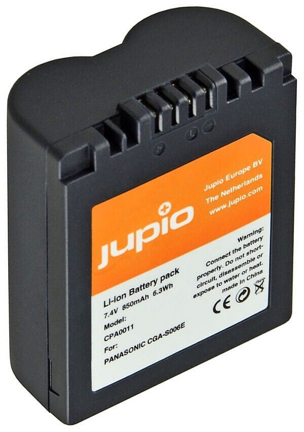 Jupio CGA-S006E Lithium-Ion Battery Pack for Panasonic & Leica (7.4V, 850mAh) The CGA-S006E Lithium-Ion Battery Pack from Jupio is an equivalent battery to the Panasonic CGA-S006E battery and operates with the same cameras. It features an 850mAh capacity to provide ample power for the camera when you need it most. This battery is made with high-quality cells for long-lasting performance. Compatible with cameras and devices that use CGA-S006E style batteries Memory Free 100% memory-free cells for maximum reliability Specification Battery Capacity 850 mAh / 6.3 Wh Chemistry Lithium-Ion Output Voltage 7.4 VDC Dimensions (W x H x D) 1.75 x 1.41 x 74.21" / 44.5 x 35.85 x 1885 mm Weight 1.53 oz / 43.5 g Package Weight 0.22 lb Box Dimensions (LxWxH) 6.2 x 4.15 x 1.25"