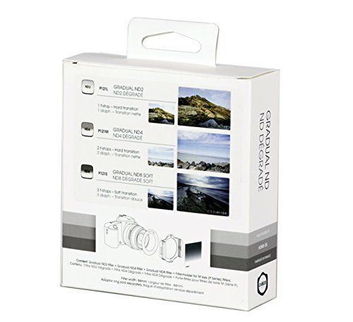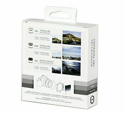 The Cokin Gradual ND Kit plus Holder (H3H0-25) contains: the ND2 filter (P121L) with 1 stop density and hard edged transition; the ND4 filter (P121M) with 2 stop density and hard edged transition; and the ND8 filter (P121S) with 3 stop density and soft edged transition. Also included in this kit is a P-series filter holder (measuring 84mm x 84mm), meaning that the only extra thing you'll need to get started is an adapter ring, the diameter of which will depend on which lens you are using.