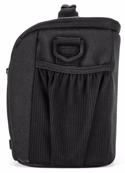 The Tamrac Jazz Shoulder Bag 50 V2.0 is designed to hold a compact DSLR with 3.5" lens, extra lens, flash, and accessories. Your camera and attached lens are held in shooting position with the lens facing down so that when you open the bag, just remove the set up and shoot. Interior touch fastened dividers allow you to configure the bag to suit your gear needs.
