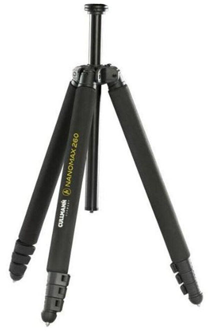 Cullmann Nanomax 260m Tripod and Case #52601 The tripod NANOMAX line represents small and smart and the perfect complete solution for photo and video enthusiasts beginners who do not want to miss on a good tripod. NANOMAX tripods are, despite their short pack size and light weight properties very stable and robust. The tripod star is made of sturdy foam-coated die-cast aluminum, the tripod legs and center column of anodized Alumniumrohr, the upper legs are. The sturdy rubber feet are slipping. SPECIFICATION Type = Camera and video tripod Type of build = Tripod Material = Aluminium Load capacity (kg) = 3,5 Max. tripod height (cm) = 162 Carrying length (cm) = 50 Central column = yes Tripod head included with product contents = no Single-handed operation = yes Quick-release plate = not included Carrying bag included with product contents = yes Length (cm) = 31 - 162 Weight (kg) = 1,4 Colour = Black